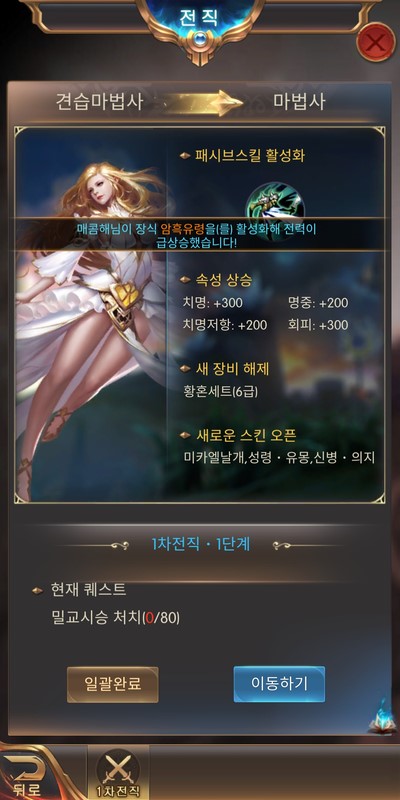 기본적인 플레이 진행은 화면 좌측에 위치한 퀘스트와 도전 콘텐츠, 우측에 위치한 경기장, 던전, BOSS, 일일 콘텐츠를 수행하는 것인데 한 손으로도 충분히 즐길 수 있도록 원 터치 기능을 제공하고 있어 스마트폰을 손에 쥐고 엄지만 움직이는 것으로 모든 콘텐츠를 편리하게 즐길 수 있네요그렇게 레벨이 어느정도 상승하게 되면 다양한 육성 시스템과 컨텐츠가 오픈되고 그 이후부터는 더욱 다양한 재미 요소를 경험할 수 있어 지루함 없는 플레이를 진행할 수 있겠습니다 그러나 게임의 진행 자체가 워낙 빠른데다 개인적으로는 디테일한 조작보다는 성장하는 캐릭터를 지켜보는 것이 더 재밌어서 꼭 필요한 경우가 아니라면 AI의 컨트롤에 맡긴 채로 앞으로 나아갔죠 보시다시피 검술사 소지섭, 마법사 안젤리나 다닐로바라는 느낌이죠? 거대한 대검을 휘두르는 검술사가 마음에 들었으나, 론칭 영상에서 본 안젤리나 다닐로바의 외모에 훅 가버린 저는 결국 마법사를 선택해서 시작을 하게 되었답니다 새로운 서버에서 플레이하면서 서버 레벨 추격 버프로 기본 경험치 버프가 있고, 7일 접속으로 1일차부터 100만 골드를 받고 날개, 무기 등의 화려한 장비도 얻을 수 있다 일반 필드 보스의 경우 일정 수준의 장비와 더불어 사냥 시 추가 경험치를 얻을 수 있도록 해주며, 전용 인스턴스 던전으로 이동하여 상대하는 마왕 보스의 경우 보다 양질의 아이템들 제공합니다