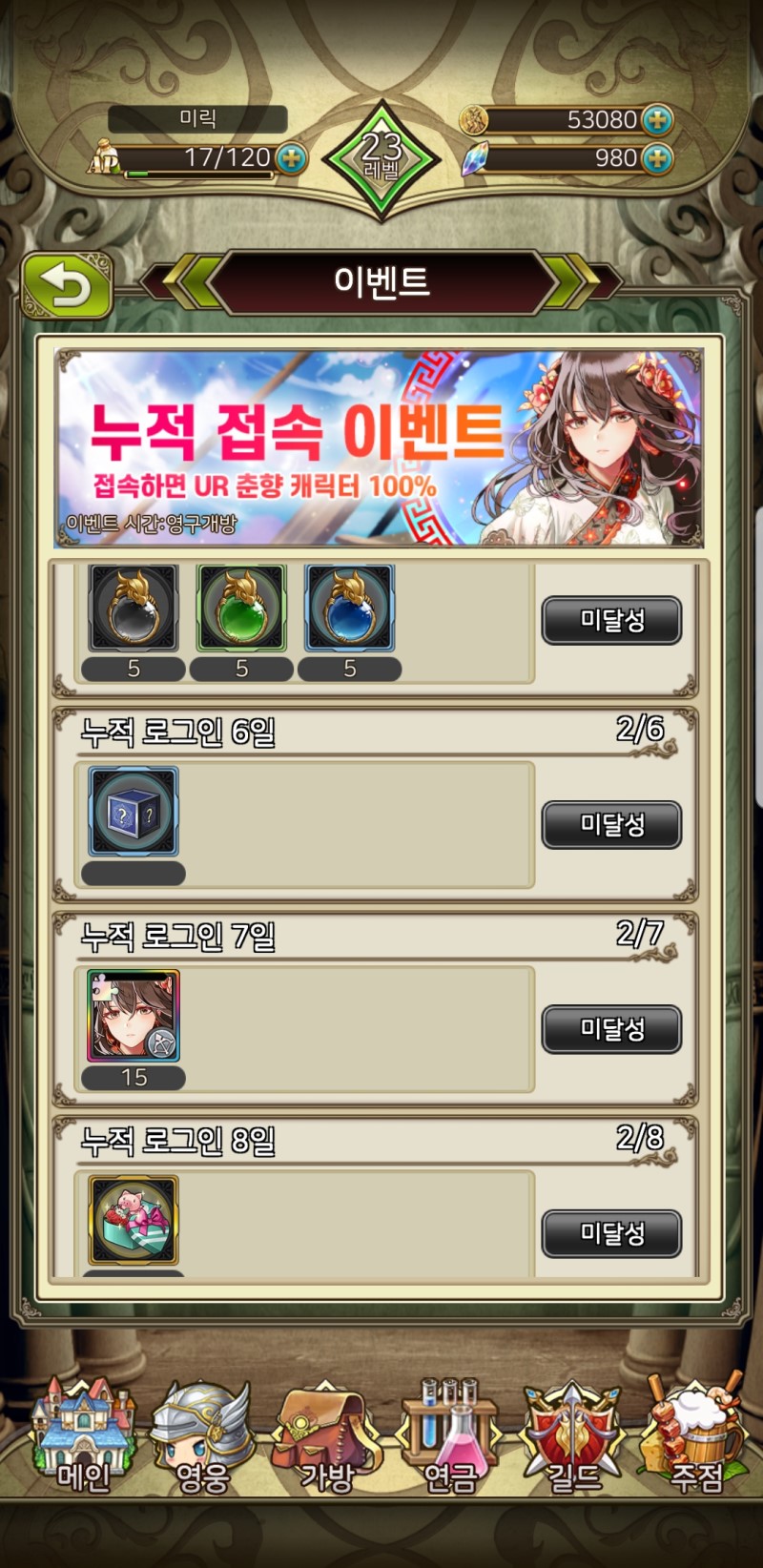 게임만 플레이해도 다양한 보상들을 획득할 수 있는 이벤트들이 많기 때문에 수집형 rpg를 원하시는 분들이라면 플레이를 해보시길 바랍니다