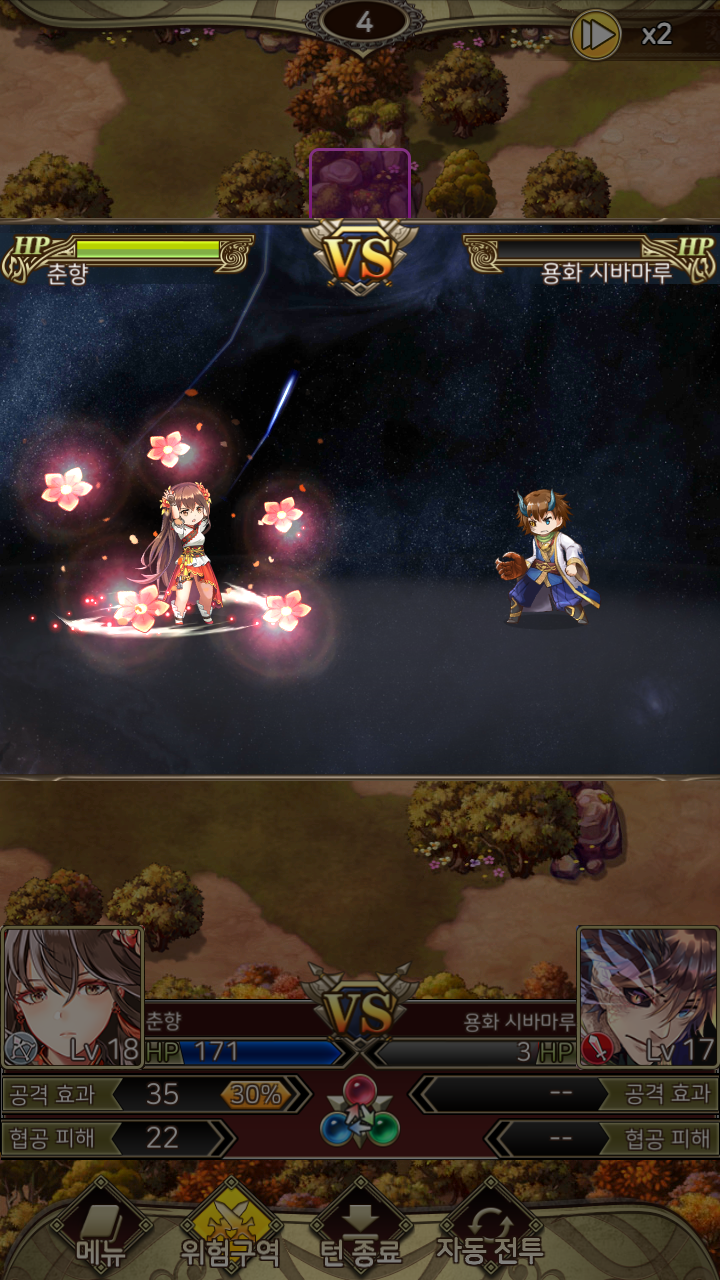 전투 시작 전, 적의 속성이나 직업을 확인할 수 있기 때문에 자신이 가지고 있는 캐릭터의 특징을 기억해두었다가 상황에 맞게 출전 시키면 좋을 것 같아 보입니다