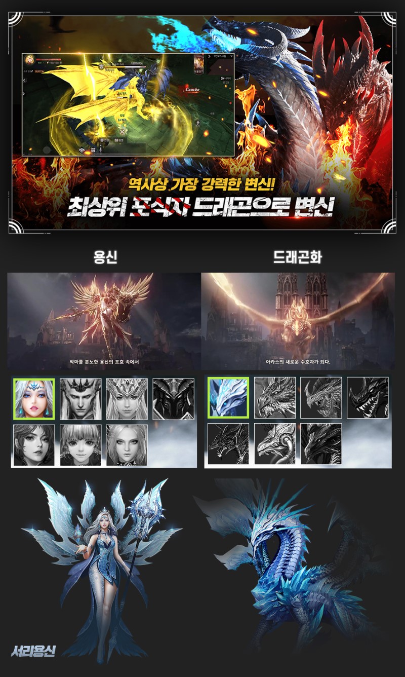 하지만 이번 이터:던전의포식자에서는 드래곤이라고 하는 최상위 포식자를 등장시킴으로 기존의 변신과는 차원이 다른 더욱 강력함을 유저들에게 보여줄 것으로 예상이 됩니다