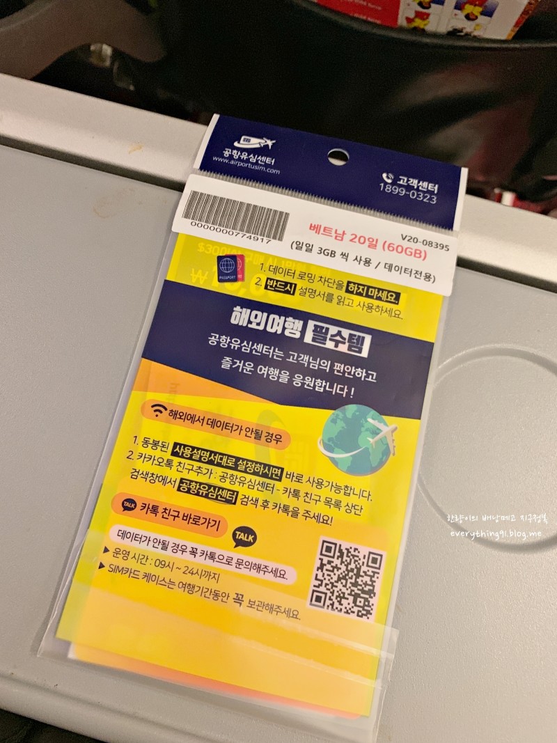 해외여행을 다녀보시면 각자 필요한 물품들이 다르고, 남들은 꼭 필요하다고 했는데 의외로 필요가 없었던 제품들도 있겠습니다 인천 공항에서 사면 20일 60기가 9900원이다 나중에 마트에서 장본것도 다 넣어두기 가능했지요