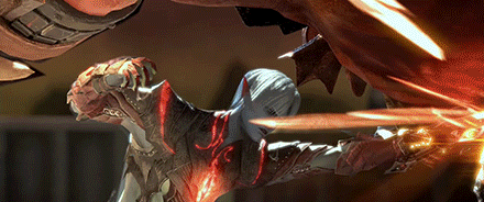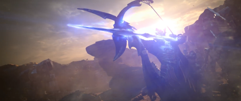 푸른빛(정령탄으로 추측)을 뿜어내는 무기를 든 인물들이 전장을 누비며 학살하고, 붉은 후드를 쓴 영웅은 치유 마법으로 아군을 지원한다