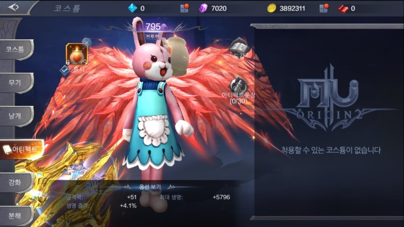 코스튬을 사용하기 위해서는 코스튬 시스템이 오픈돼야 하기 때문에 처음 하시는 분들 중에 코스튬이 안 써진다고 당황하지 않으셔도 됩니다 신규 유저 출석체크를 하면 앞서 말씀을 드렸던 5티어 레전드 장비와 레벨 360으로 급속 성장을 할 수 있는 신규 용사 상자를 줍니다 일단 3천 로제는 기본으로 받으며 MU시리즈 코스튬 상자 30일과 에픽 아티팩트 코스튬인 영원의 약속 30일을 받을 수 있어 한 달 동안 코스튬 걱정 없이 능력치도 올라가는 효과를 받으며 즐길 수 있죠