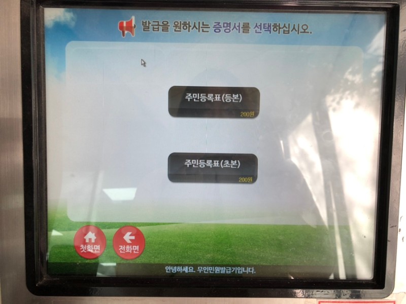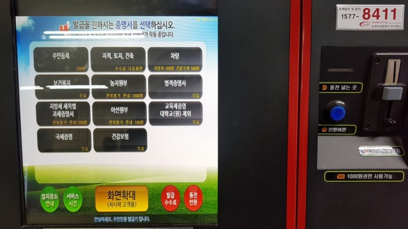 이제는 인터넷으로 주민등록등본이나 초본을 손 쉽게 출력할 수 있지만 만약 컴퓨터를 사용할 수 있는 공간에 있거나 공인인증서를 발급받지 못해서 이용에 어려운 분들을 위해 주민등록등본 무인발급기를 이용하시는 분들이 있을껍니다 지역내 시군구청 사이트, 민원24 인터넷을 통해 확인 가능하지만 더 간단한 방법은 따로 있네요 그렇다고 몇 안 되는 민원처리 때문에 기기를 구입할 수 없는 노릇