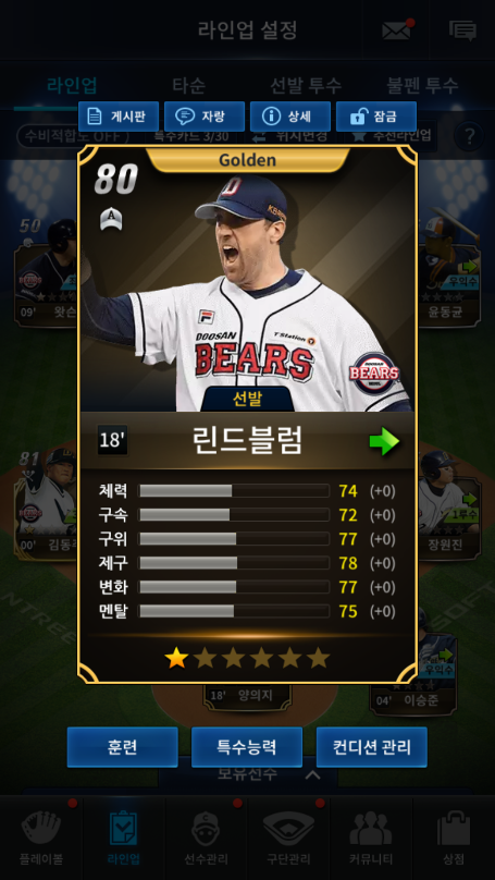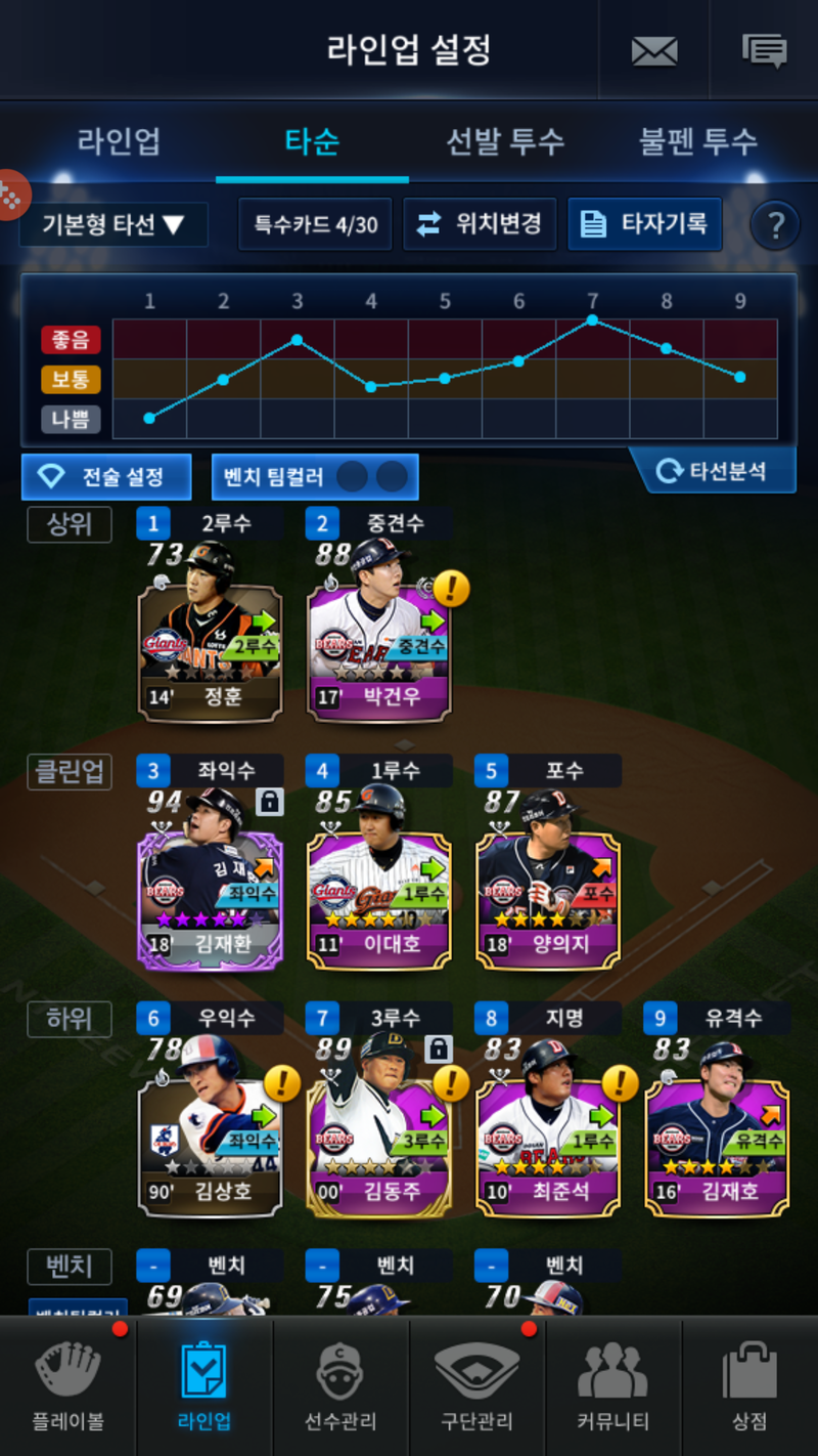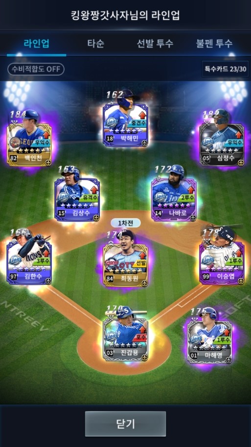 재미있는 건 3점 차 이하의 접전이나 끝내기 승리로 대미를 장식하는 모습을 보여주면서 팬들의 마음을 짜릿하게 만들어주고 있다는 것 본인이 원하는 구단의 최정예 멤버를 5성, 4성으로 만들고 출석체크 다양한 미션을 통해서 모든 선수들을 높은 등급으로 만들 수 있는 절호의 기회라고 해야 할까? 사실, 맨땅에 헤딩해서 하는 재미도 있지만 이렇게 라인업이 탄탄하면 쉽고 기분 좋게 즐길 수 있기 때문이다
